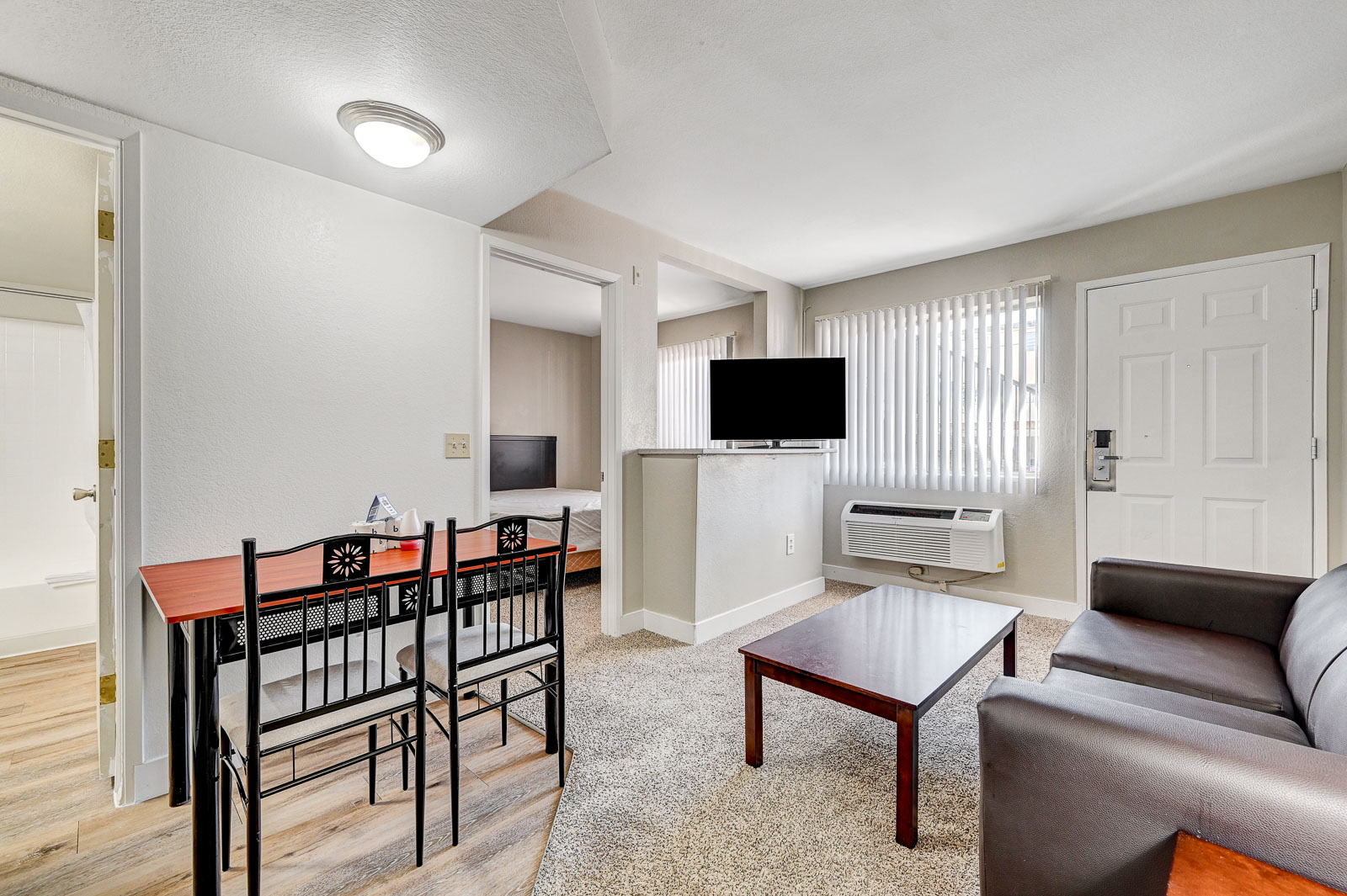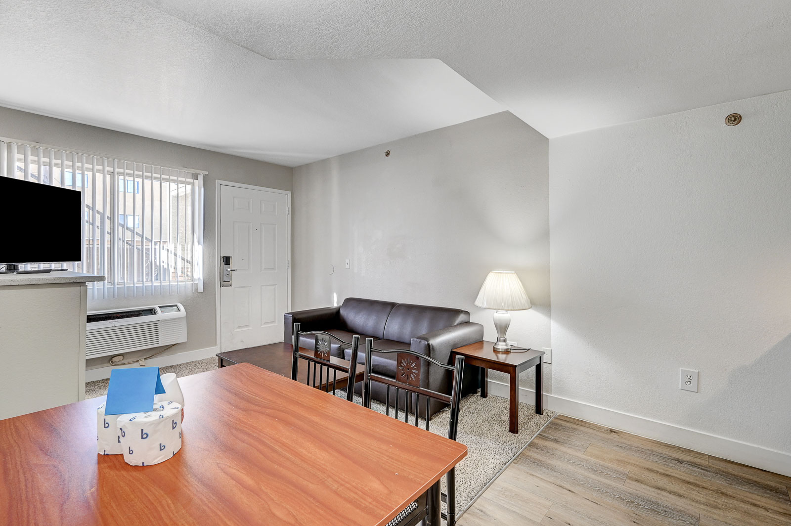 Check out the amazing amenities our furnished suites in Las Vegas have to offer! We have free parking, pet friendly rooms, and reasonable rates. Enjoy our sparkling pool during the summer months and an amazing staff available during office hours. We have a laundry facility on site so you’ll never have to wait to have clean clothes for your night on the Strip. Call us today to learn more!